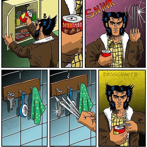 This comic shows the other part of them that’s useful: he can use them as extra-long “fingers.” We don’t exactly blame Logan for not using his claws to open cans. They must be complicated to clean if he gets food on them.